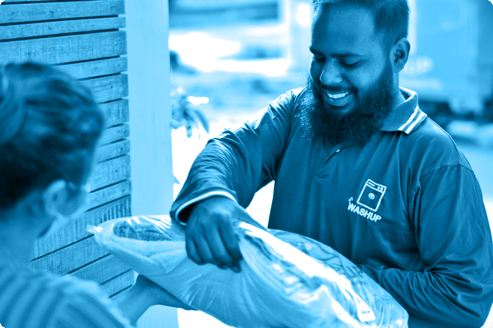 Washup reduces laundry costs to half with its KG method. You don’t have to pay for every piece but for every kilogram of laundry.